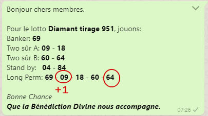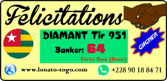 Bonjour chers lecteurs,Pour le lotto Diamant tirage 951, nous avons encore gagné un Banker, et ceci à la base (First box). La chance est de notre côté et nous remercions notre Seigneur.