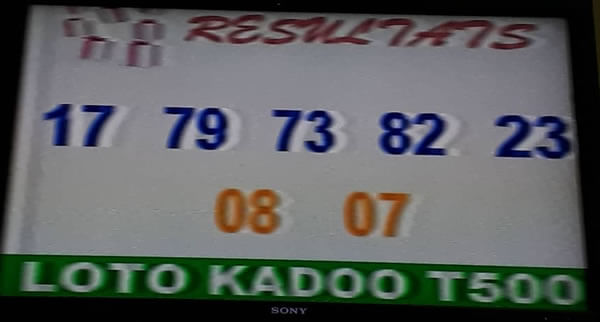 Aujourd'hui la LONATO nous a fait plaisir est donnant les résultats plus tôt que les vendredis précédents. Ce tirage est avec Bonus. Résultat KADOO T 500 ===> 17 - 79- 73 - 82 - 23 Bonus 08 - 07