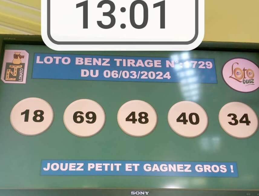 Bonjour et bienvenue sur notre blog www.loterie-togo.com. Le moment tant attendu est enfin venu. Voici les résultats ou numéros gagnants du loto BENZ tirage 1729 de ce Mercredi 06 Mars 2024. Félicitations aux gagnants et beaucoup de courage aux perdants.