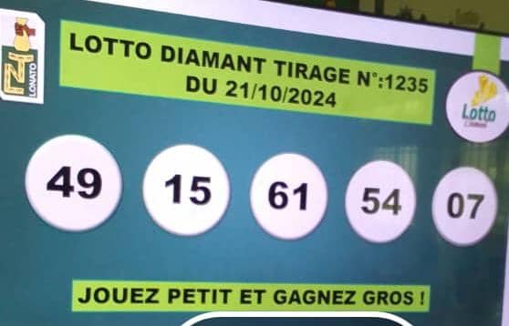 Bonjour chers lecteurs et parieurs, et bienvenue sur le blog www.loterie-togo.com. Le moment tant attendu est afin là, voici les résultats ou numéros gagnants du lotto DIAMANT tirage 1235 de ce lundi 21 Octobre 2024.