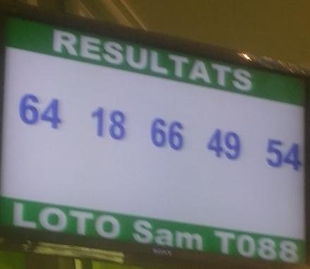 Voici les résultats du lotto Sam tirage 88