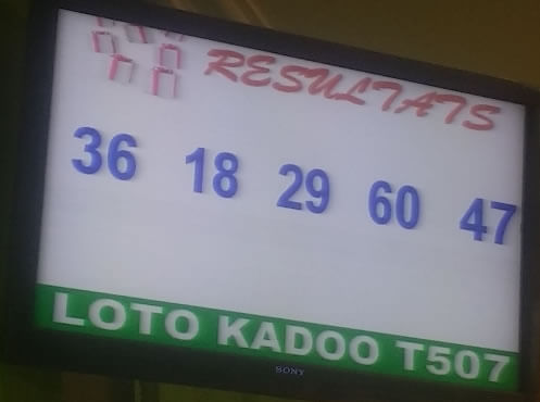 A voir les résultats de ce jeu Kadoo tirage 507 de ce jour, mon groupe et moi avons gagné un One Banker "36". Résultats Loto KADOO Tirage 507: ===> 36 - 18 - 29 - 60 -47