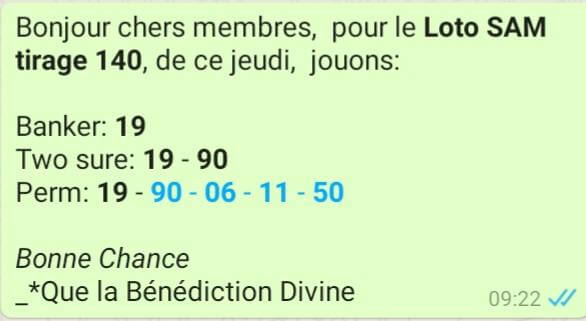 Bonsoir chers lecteurs et parieurs, voici les numéros gagnants du lotto Sam tirage 140. LONATO est mauvais hein, je vais vous montrer mon jeu. Humm